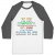 features raglan 3/4 sleeves and a modern fit that is perfect for a day